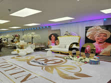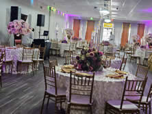Decoration package, full event and wedding planning, event coordination, throne/chiavari chair and table rentals. This is a large and versatile event space designed to accommodate a wide range of events, from corporate functions, weddings, birthday parties and funerals. It boasts a modern design with stage, picture area, changing room and state-of-the-art equipment and lighting.